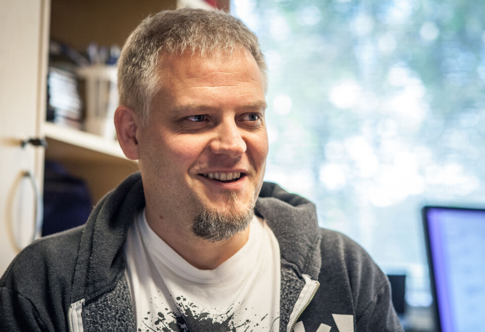 – Vi var et lite team i starten, og alle hadde dette som sideprosjekt i tillegg til vanlig jobb. Da vi trengte lyd og musikk, ble det min rolle å fikse det. Musikken som brukes i dag er den jeg spilte inn den gangen.