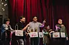 Ti minutter over tiden kommer ni ungdomspartiledere labbende inn på scenen til stor applaus fra salen. Ordstyrere er Marcus Aas Aure og Aude Skrivarhaug.