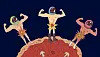 Igjen på jorda står alle kvinnene. I blå sommerkjoler som bølger som havet, og speider opp på dem, slik kvinner alltid speider opp etter ekspanderende, kapitalistiske hvite menn. De er tross alt nesten like digge som brent pizza. «Hallo, hvor blir dere av, hva driver dere med der oppe» spør vi, ikke bekymret, men litt lengselsfullt, kanskje. Vi står på jorda, den har kanskje ikke gått under helt enda, og roper den lille guttegjengen inn til middag. «Nå må dere bli ferdige med å leke» sier vi. Omsorg. De roper tilbake: «jada, vi kommer hjem snart» og det gjør de også. Litt som hauk og due på barneskolen.