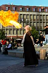 Klokken er halv fem om ettermiddagen, og kulturnatt er allerede godt i gang. På torget har publikum blitt lovet flammeblåsing og kampshow, og under Olav Tryggvasons åsyn trer fire karer frem; alle er brynjekledde og klare til kamp. De pansrete mennene angriper og parerer, og det er ikke tvil om at «kamp»delen av arrangementet leverer. Samtidig klør vi i fingrene etter flammer.