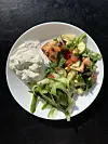 Skrell agurken, og skjær den i mindre biter. Skallet kan fint brukes i en agurksalat eller lignende.