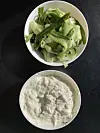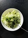 Finhakk hvitløk, mynte og persille. Bland så dette med grønnsakene.