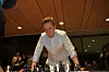 Bae gikk også rundt til alle bordene og signerte noteringsskjemaene.